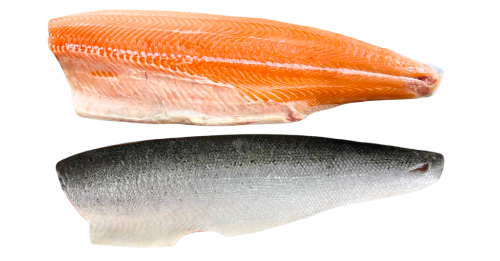 ปลาแซลมอนสด แล่ ติดหนัง ไว้ก้าง